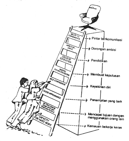 4. Berorientasi Hasil Kerja, terdiri dari sifat:- Ingin berprestasi, kemauan untuk terus maju dan mengembangkan usaha. IQ dan EQ tidak cukup untuk memprediksi keberhasilan. Dibutuhkan AQ (Adversity quotient) yaitu tingkat ketahanan terhadap hambatanhambatan yang ditemuinya dalam mencapai keberhasilan. Dalam AQ ada tiga tipe pendaki puncak keberhasilan, yaitu quitter, champer, dan climber. Tipe quitter adalah mereka yang langsung menyerah atau tidak mau memanfaatkan peluang. Tipe champer adalah mereka yang cepat puas dengan apa yang sudah dicapai walaupun bisa mencapai keberhasilan yang lebih tinggi kalau mereka mau. Tipe climber adalah orang yang terus mendaki tangga keberhasilan hingga mencapai puncak tertinggi meski menemui berbagai hambatan atau rintangan.