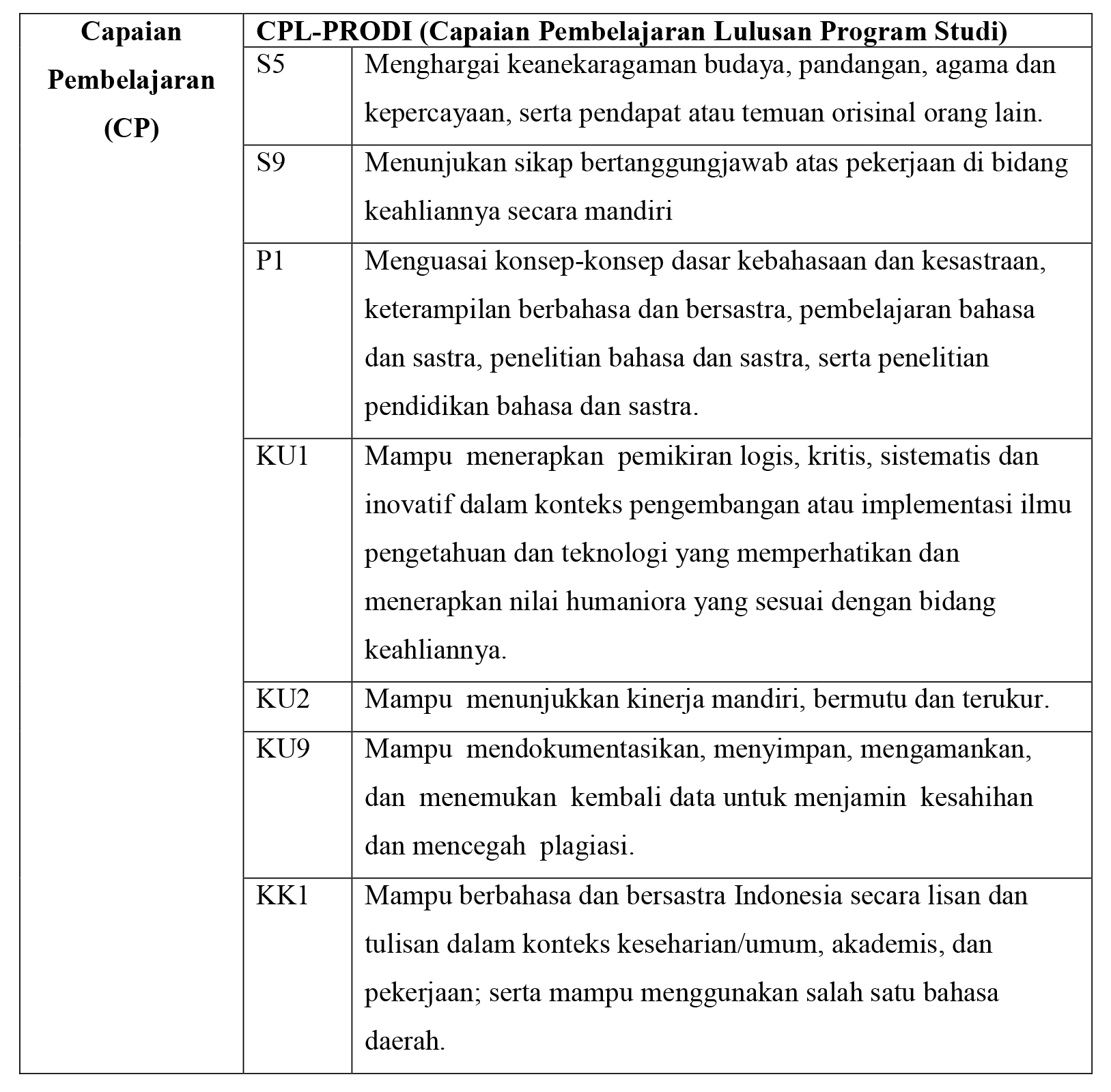 Silakan mulai dipahami bersama, rumusan CPL berikut ini.