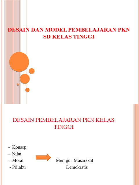 Assalamu'alaikum warahmatullahi wabarakatuh, selamat pagi anak-anak semua. Selamat datang di mata kuliah Pengembangan Pkn SD pada pertemuan ini mengenai materi Pengembangan desain dan model pembelajaran PKn Kelas tinggi. Diharapkan mahasiswa dapat membaca terlebih dahulu materi, dan mengisi absensi serta mengerjakan tugas yang akan saya berikan. Terima kasih