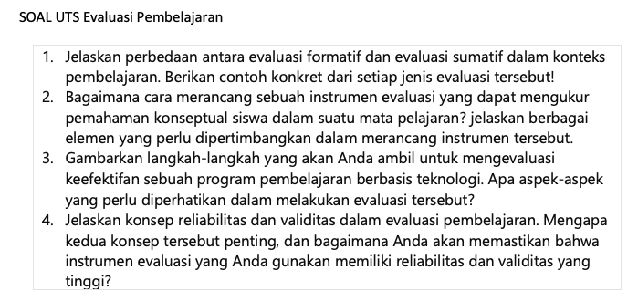 Lembar Jawaban dikumpulkan dengan Bu Miranda di PGSD Metro Maksimal Kamis 17 April 2025 pukul 13.00