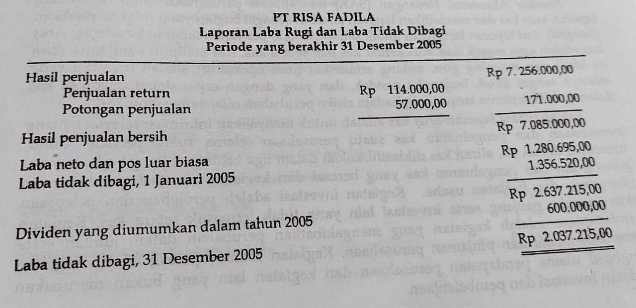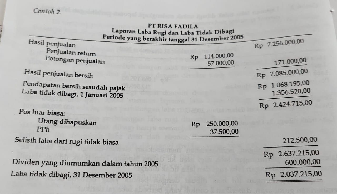 - Ekuitas: Saldo laba, dividen, saham treasuri, dan penghasilan komprehensif lain,