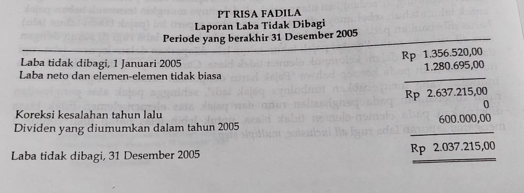 - Ekuitas: Saldo laba, dividen, saham treasuri, dan penghasilan komprehensif lain,