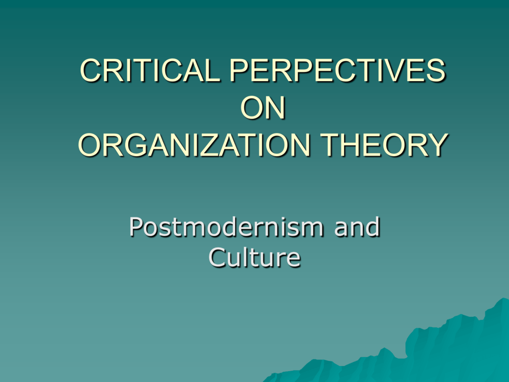 • Sesi 7; Bab 6. Perspektif kritis pada teori organisasi dan Bab 7. Budaya, kekuasaan, politik, dan pilihan
