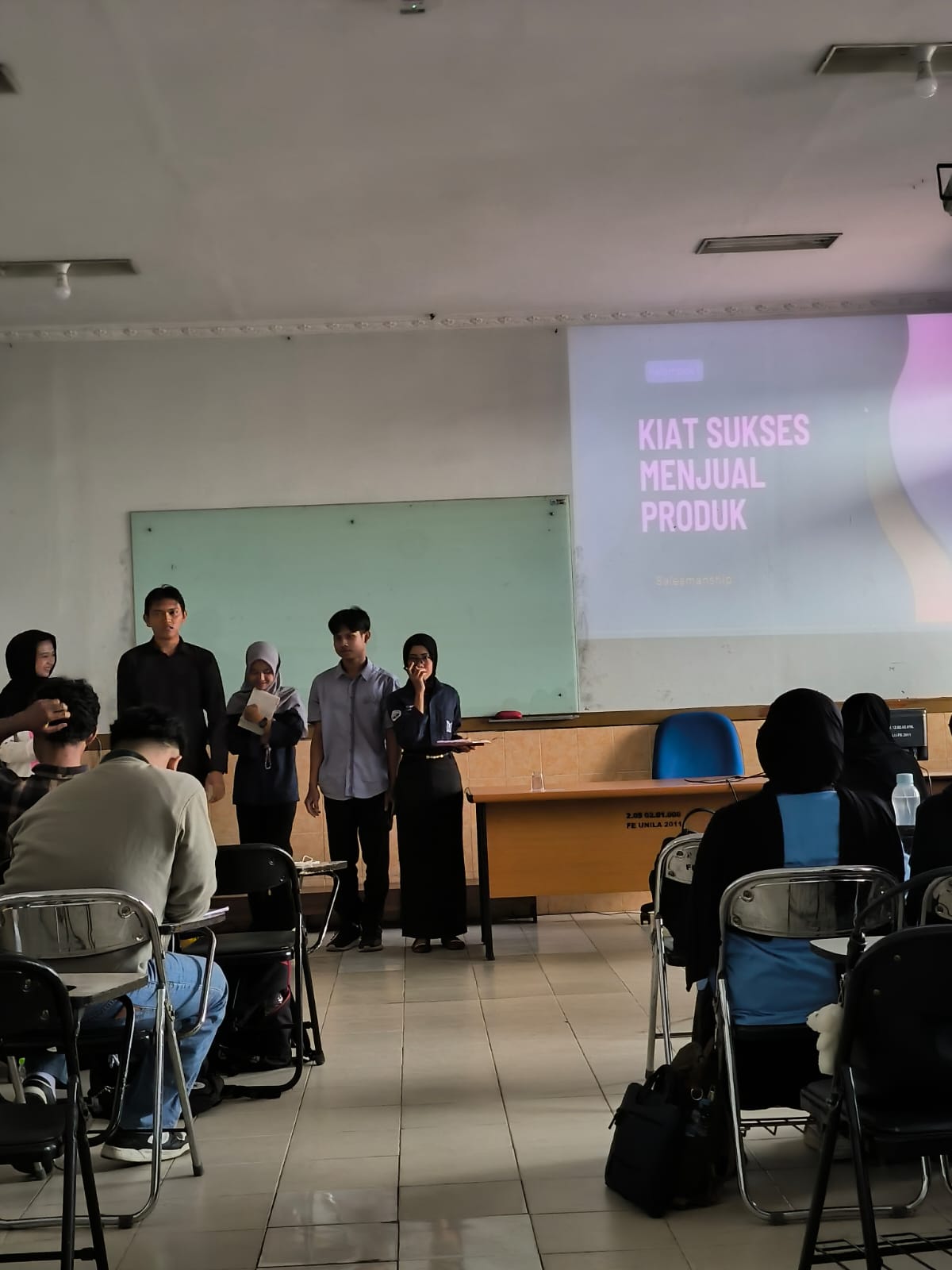 Seluruh mahasiswa disilahkan untuk berikan pertanyaan dan tanggapan terkait peresentasi kelompok : Kiat Sukses Menjual Produk .