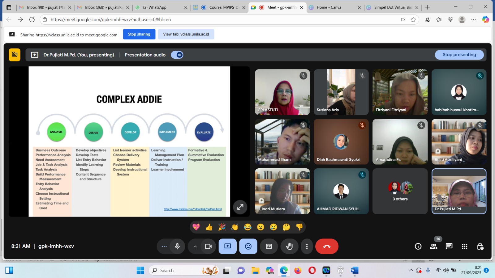 Selamat datang di perkuliahan Desain dan Model PIPS, berbobot 3 sks, dengan dosen pengampu Dr. Pujiati, M.Pd., Dr. Sugeng Widodo, M.Pd., dan Dr. Nikki Tri Sakung, M.Pd.
