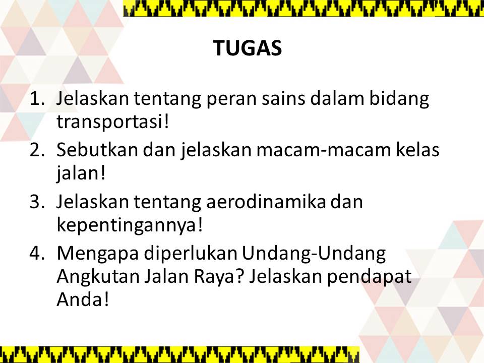 Selamat datang saya ucapkan kepada peserta didik Generasi Millennial Era Digital 4.0 pada Pertemuan Ketiga belas Mata Kuliah Basic Science. Semoga peserta didik dalam keadaan baik dan siap mengikuti proses pembelajaran dengan semangat. Gambaran umum Pertemuan Ketiga belas adalah peserta didik Generasi Millennial Era Digital 4.0 diharapkan menguasai Kemampuan Akhir berupa kemampuan Mengkaji Prinsip dan Aplikasi Metode-Metode Sains Dalam Bidang Transportasi. Untuk mencapai kemampuan tersebut, maka pada Pertemuan Ketiga belas Mata Kuliah Basic Science yang membahas topik Sains Transportasi didesain terdiri atas beberapa bagian, yaitu : (i) Tujuan Pembelajaran, (ii) Peta Konsep, (iii) Materi Pembelajaran dalam bentuk PDF, (iv) Video Pembelajaran, (v) Hiburan (Ice Breaking), (vi) Rangkuman, (vii) Forum Diskusi, (viii) Kuis (Quizizz), (ix) Tugas, dan (x) Modul Digital (Scrom).