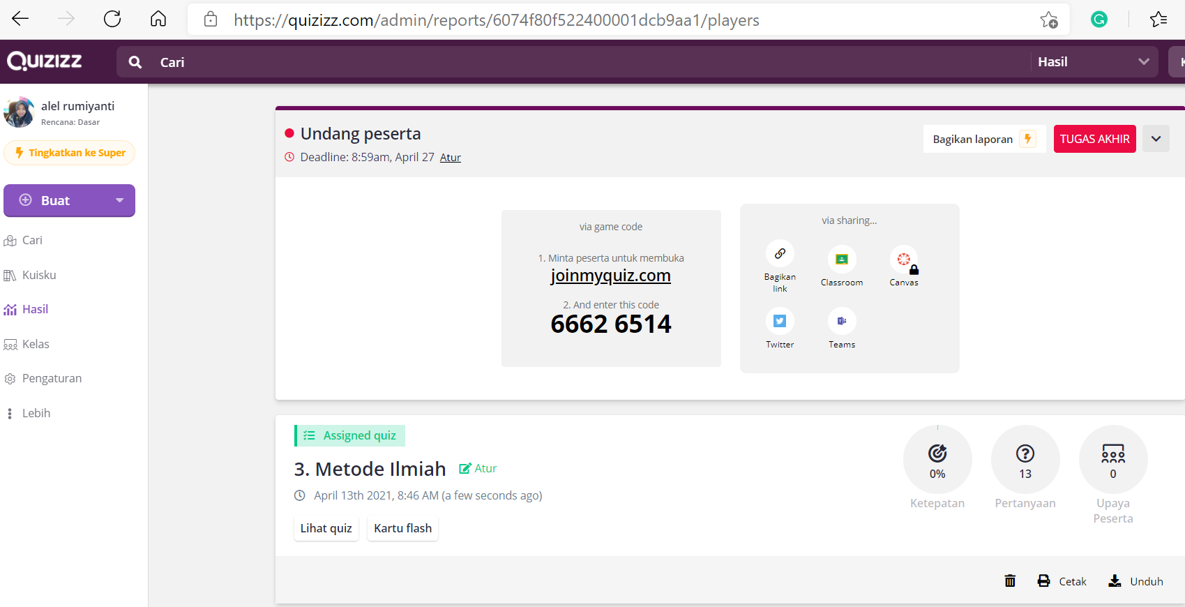 Selamat Datang saya ucapkan kepada peserta didik di Kuis Ketiga Mata Kuliah Basic Science yang menggunakan Quizizz. Untuk dapat mengakses Kuis Ketiga, peserta didik harus melakukan beberapa langkah berikut ini, yaitu