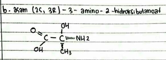 Apakah anda setuju bila struktur di atas adalah asam (2S,3R)-3-amino-2-hidroksibutanoat? jelaskan alasan anda, dengan gambar yang jelas