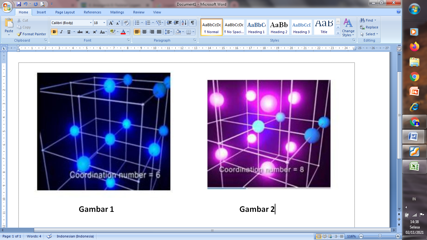 Saat membandingkan susunan kubus sederhana dan kubus berpusat badan saudara tidak menampilkan gambar sehingga audience bingung meembandingkan nya secara visual.
