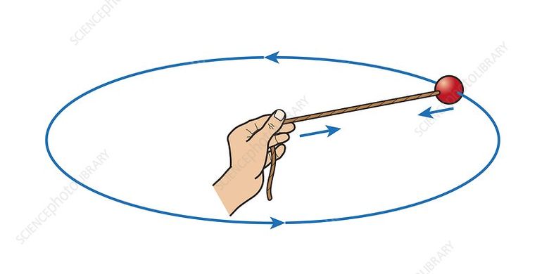 2. Bandul yang diikat dengan tali yang diputar. Gaya sentripetal membuat bendul tidak lepas.