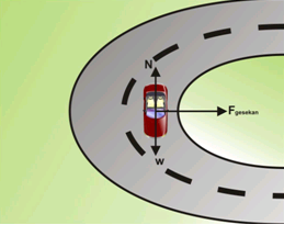 4. Saat mobil menikung, gaya sentripetal pada ban mobil membuat mobil tidak oleng keluar jalan.