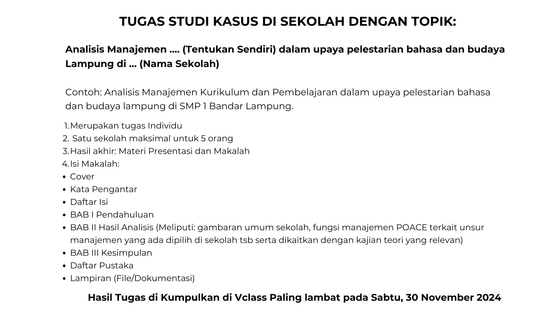 2. Ketepatan menganalisis bidang garapan manajemen pendidikan di Sekolah yang meliputi kurikulum, pembelajaran, peserta didik, dan guru