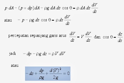 Karena persamaan gerak ini menghubungkan kecepatan, tekanan dan perubahan ketinggian dalam fluida yang tidak viscous. Integrasi persamaan euler untuk aliran non rotasi yang tidak mampat menghasilkan persamaan bernoulli.