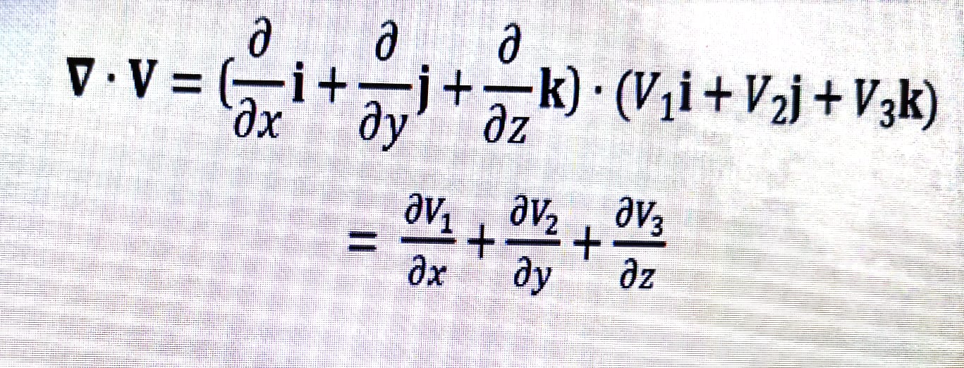 Teorema divergensi, yaitu suatu vektor fungsi V(x,y,z) (terdefinisi dan terdeferensial terhadap semua variabel bebas pada suatu domain) didefinisikan sebagai ganda skalar antara operator delta dengan vektor fungsi V(x,y,z) = V1(x,y,z) i + V2(x,y,z) j + V3(x,y,z) k.